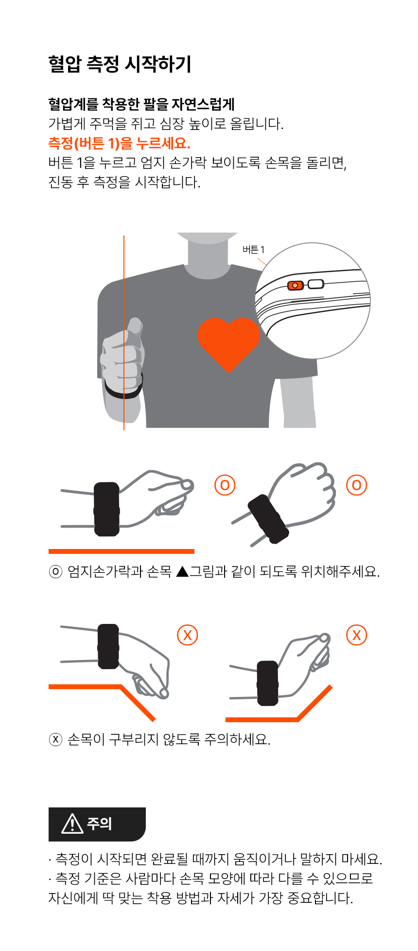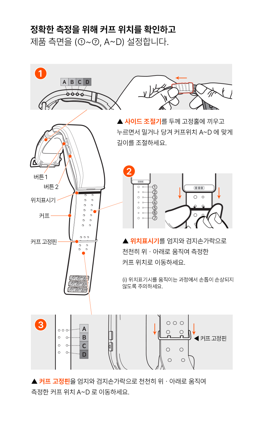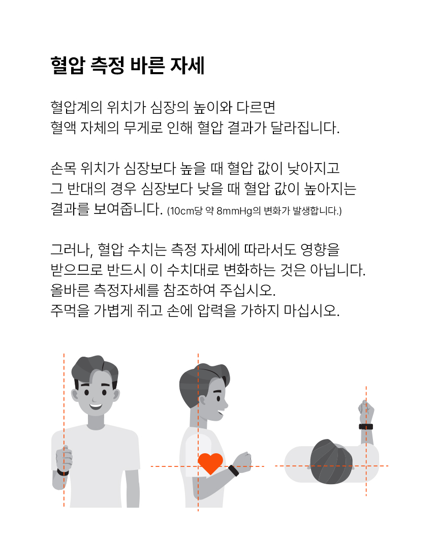 정확한 측정을 위해 착용위치를 확인하세요.